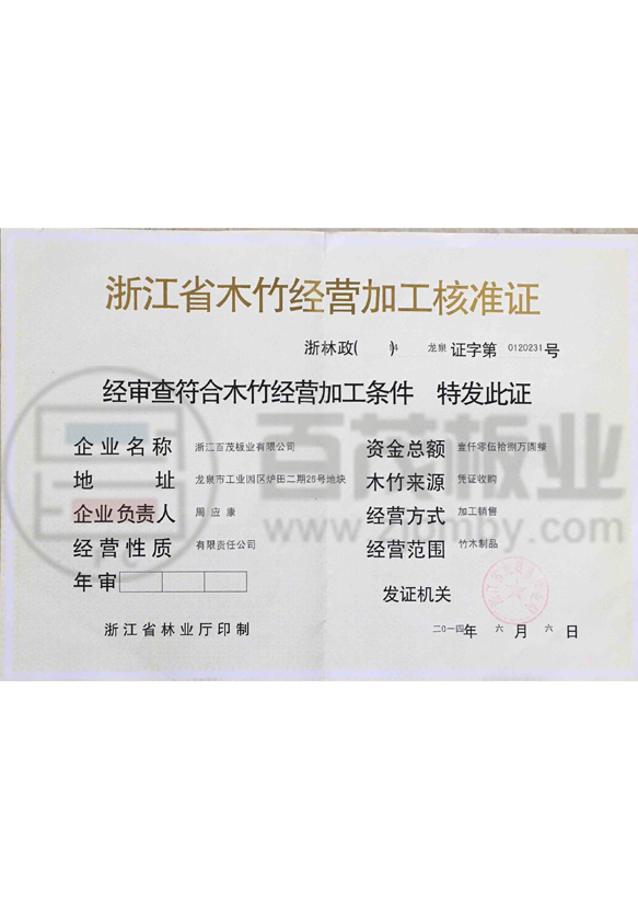 浙江省木竹經(jīng)營加工核準(zhǔn)證